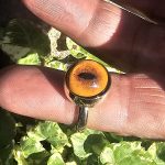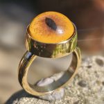 Hand-forged 9ct gold ring set with a reverse-painted, hand-blown glass fox eye. One of a kind. Size N½.