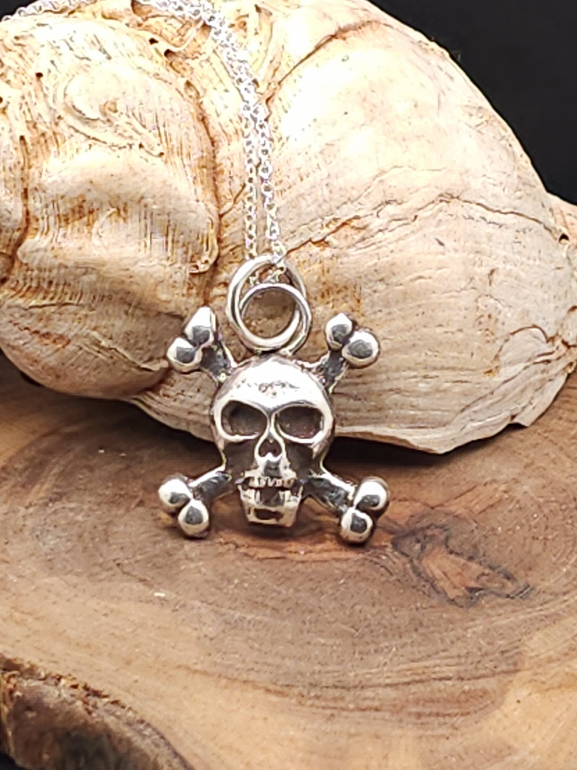 Embrace an edgy aesthetic with our Handmade Silver Skull and Crossbones Pendant. Artfully crafted, this unique piece encapsulates the rebellious spirit with a finely detailed skull and crossbones design. The sterling silver construction adds a touch of sophistication to the rugged symbolism, making it a distinctive accessory for those who appreciate the fusion of style and rebellion. Make a statement that’s as bold as it is refined with this handcrafted pendant.