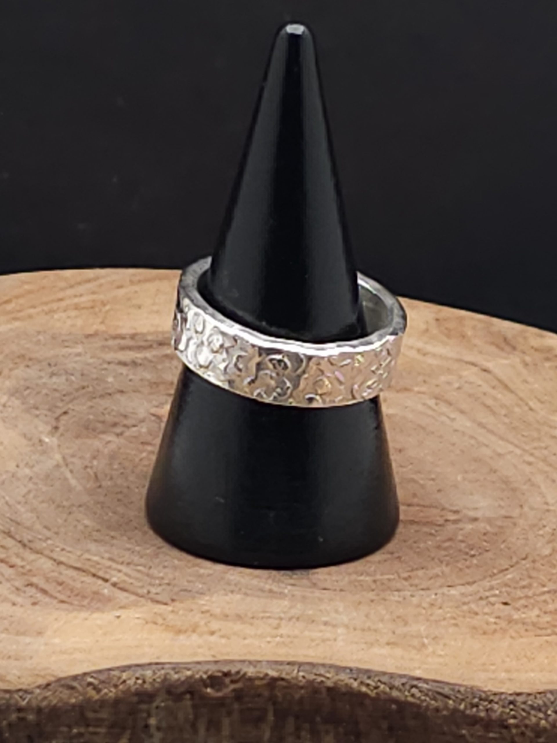 “Elevate your style with our Silver Textured Ring. Meticulously crafted, this unique piece features captivating textures that add depth and character to your look. Make a statement effortlessly with this handcrafted ring, a symbol of modern elegance with a touch of artisan charm.”