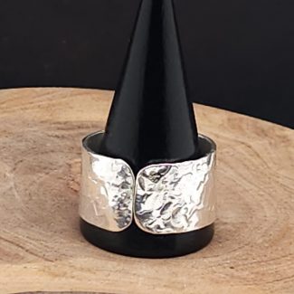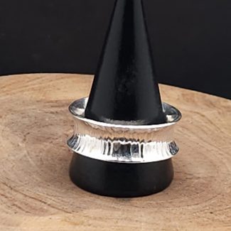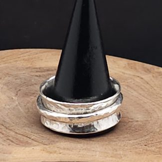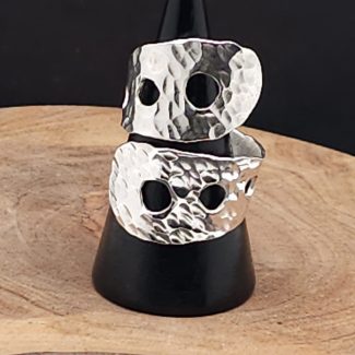 Finished with a bold double band for strength and presence, this ring has serious weight and attitude on the hand.