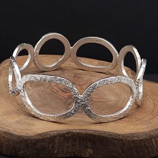 “Adorn your wrist with the rhythmic beauty of our Silver Rolling Waves Bangle. Meticulously crafted, this unique piece captures the essence of the ocean’s motion in a sleek and timeless design. Elevate your style effortlessly with this handcrafted bangle, a symbol of fluid elegance.”